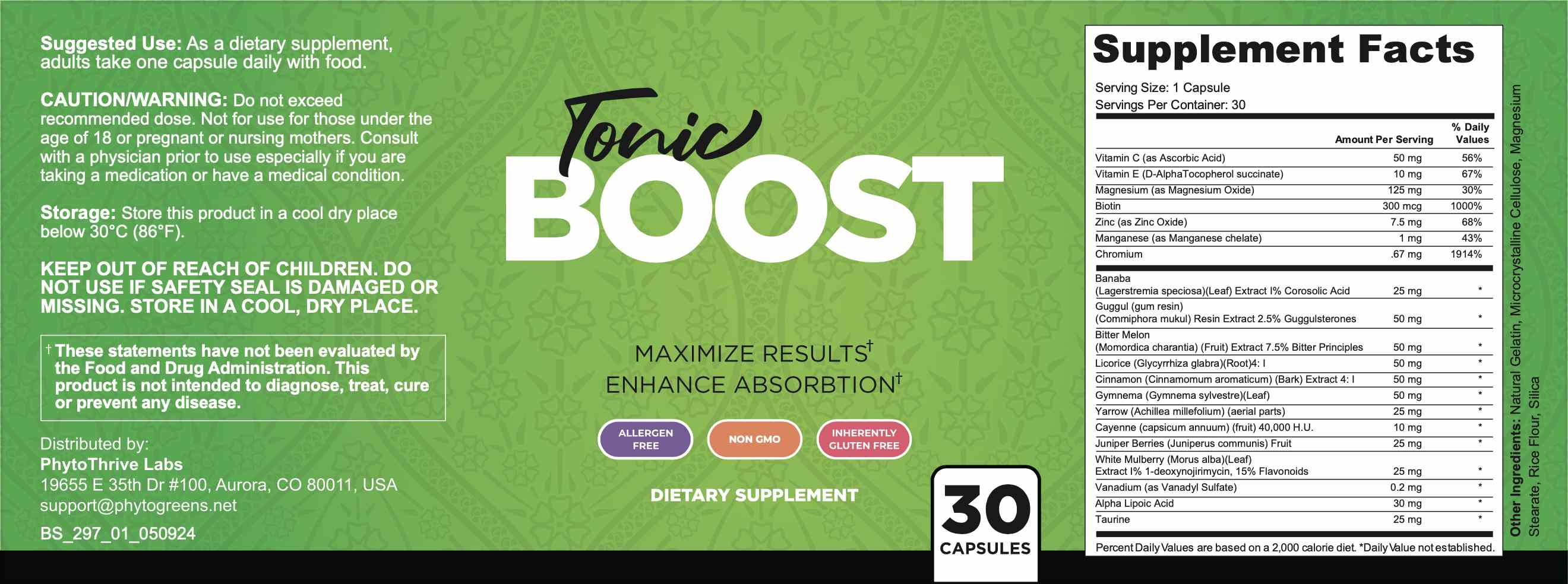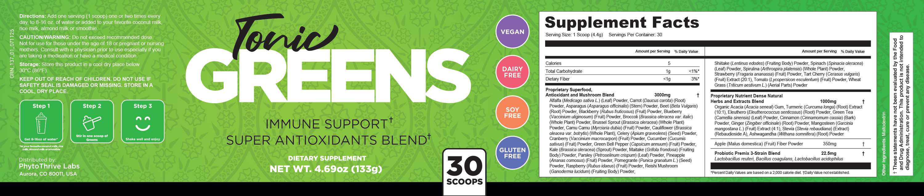 To view the full list of ingredients and the nutritional values of the TonicGreens ready-made shake, please check the product label below.